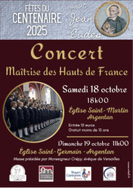 Concert de la maîtrise des Hauts de France, samedi 18 octobre à 18h à l’église St Martin d’Argentan. À noter.