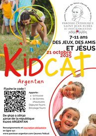 Pour les 7-11 ans, le mardi 21 octobre 2025 de 9h30 à 16h30, à la maison paroissiale d'Argentan, 42 rue de la république. Chacun apporte sa trousse, de bonnes chaussures pour jouer dehors. Déjeuner et bricolage fourni.